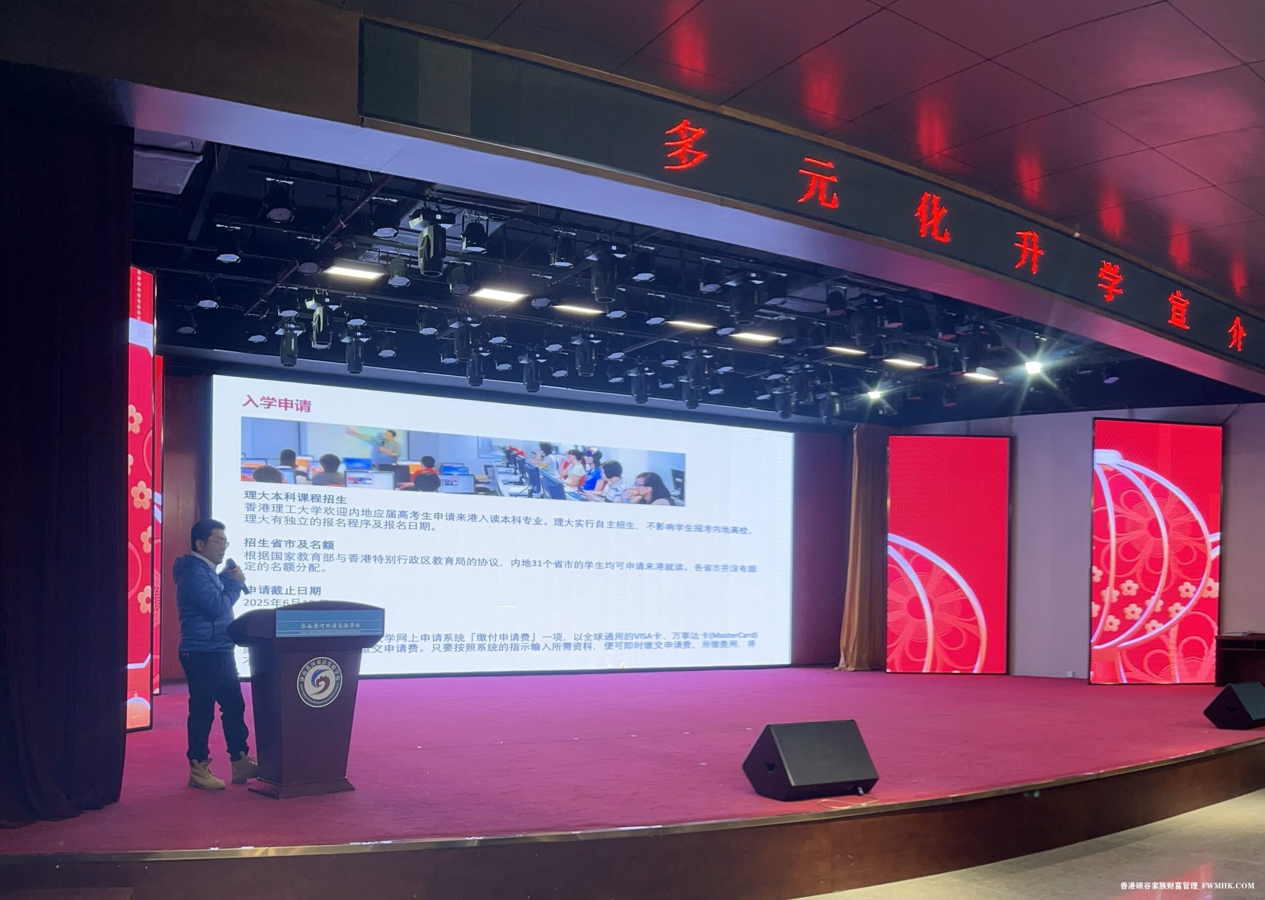 香港山东侨界联合会 金晖会长 和威蓝国际平台创始人韩江炜先生联袂登场,为数百名学生和教师带来了一场关于香港及海外留学的精彩讲座。此次活动中, 金晖会长 的分享深入浅出地介绍了香港理工大学内地招生资讯、香港留学的优势与成本,以及学生未来的发展前景,赢得了在场师生的一致好评。